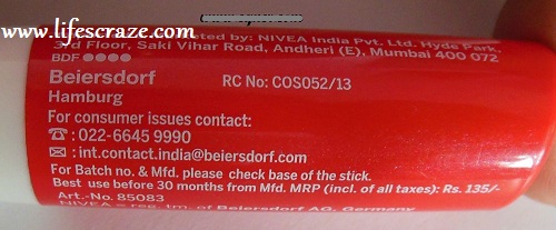 Packaging:This lip balm comes in a plastic white tube with a reddish cap. The shade name can be found on the cap. Overall the packaging is regular and not special. However it is travel friendly and hygienic. Tub packaging isn’t good and so I mostly prefer chap sticks.